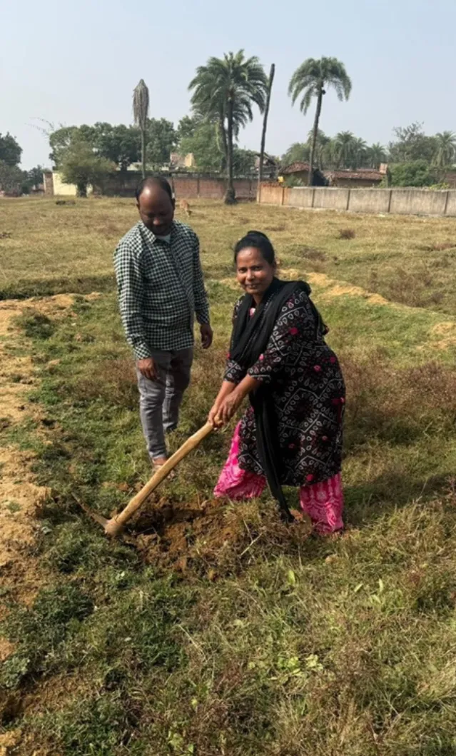 As many of you know from our first trip, we were able to connect with a pastor in the city of Deoghar, Pastor Alfred. He and his wife Sirin and son James (14) are faithful believers there in a particularly hard region for the gospel. Alfred himself suffers from a disability and walks with the use of a cane. Does that stop him from riding his motorbike all over Deoghar and even to Athmuria to share the gospel? Absolutely not. He continues to do the work of the Lord there with joy! He said when he first moved there several years ago, there was not even one other believer to gather with. Now they have a beautiful community that is growing there, and God has asked us personally to help them build a church building alongside them to serve as a gathering place, and in the future also a place of resource for the entire community and the surrounding villages. The village Athmuria that God spoke to me about in September 2024 is about 1.8 miles from the land where the church will be. We were able to go and visit this land and have a “ground-breaking ceremony” where we were able to participate in dedicating this place to Jesus and his glory! What an honor it is to come alongside these faithful people and build something beautiful. Just right down the road from this church site is a brand new government sponsored Ashram- a large hindu center for spiritual practices, essentially a hindu monastery. Much of the persecution there is politically motivated for nationalist and hindu agendas. I feel that this is so strategic of the Lord for this place and region! I love that he is in a sense, challenging these false gods and idols by allowing us to partner in his kingdom work! It’s just so amazing to be there in person and see it with our own eyes.